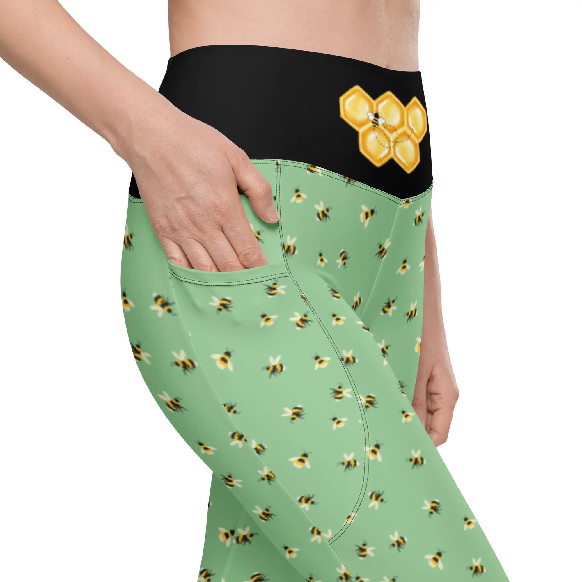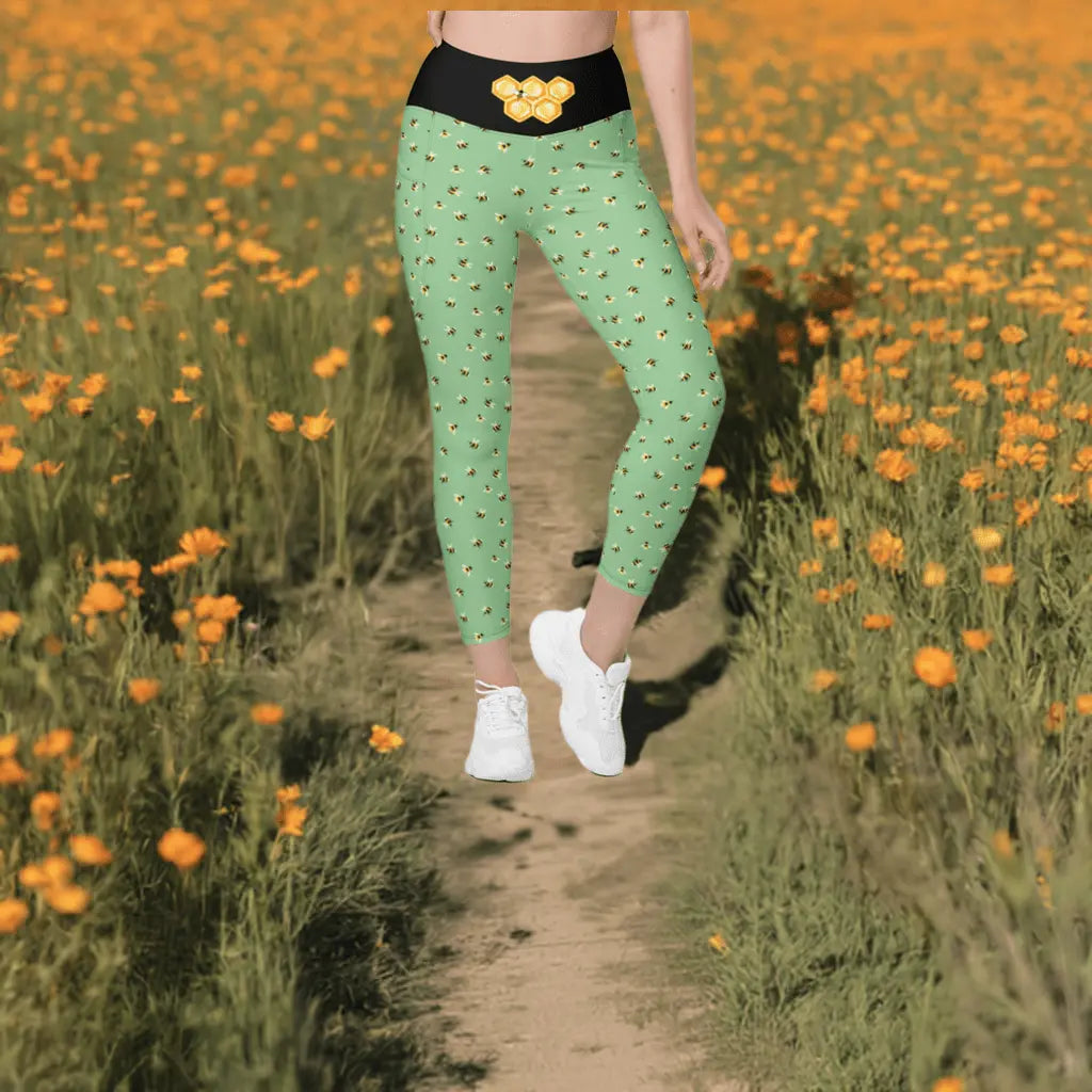 Crafted from high-quality, stretchy fabric, the buzzing bee leggings provide a comfortable fit that moves with you. Whether you're stretching, running, or doing yoga, these leggings offer support without restricting movement. They hug your body in all the right places, ensuring that you feel confident and unrestricted, which is essential during your workouts.