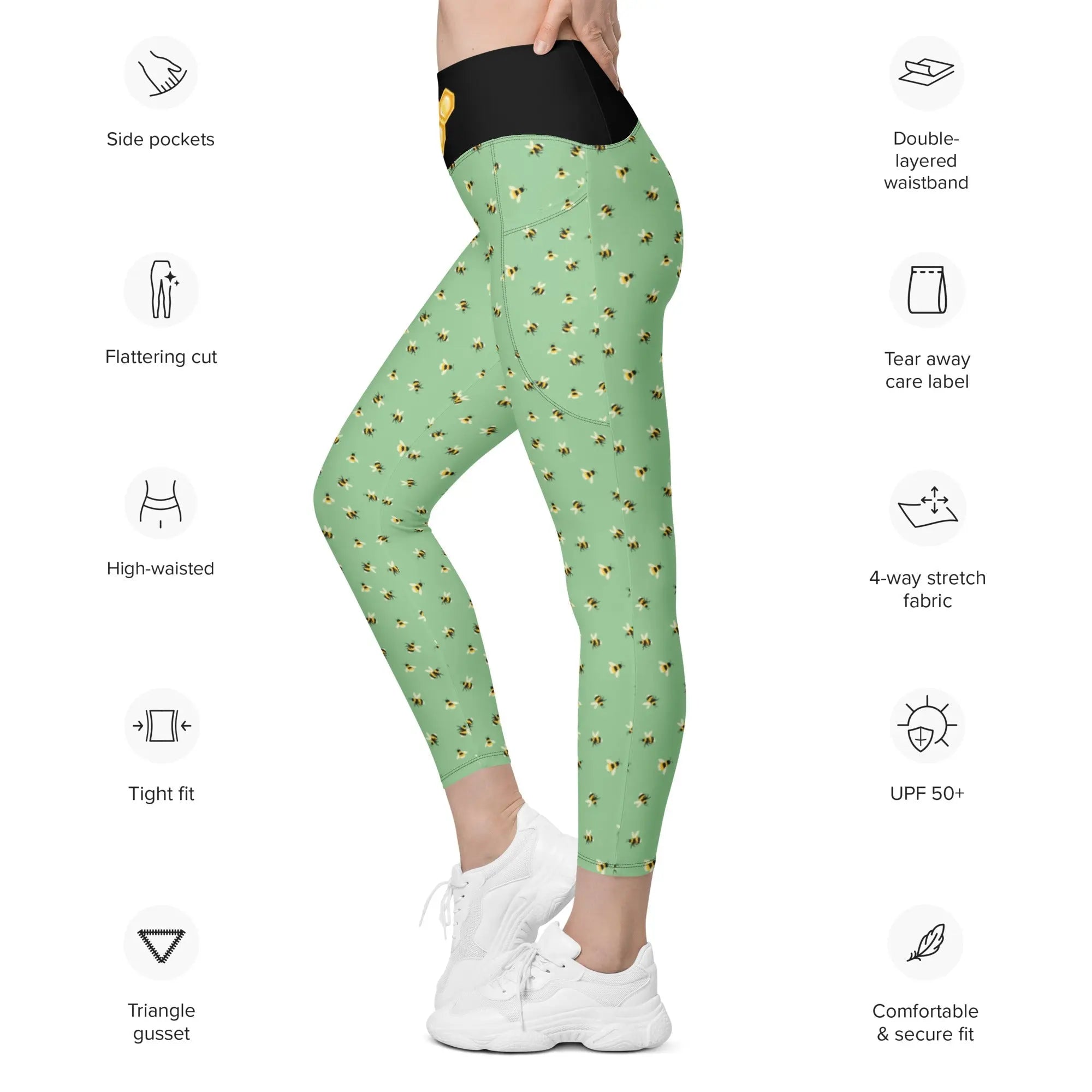 One of the standout features of these buzzing bee leggings is the handy pockets. These pockets are perfect for storing your phone, keys, or gym membership card. This means you can stay focused on your workout without worrying about where to put your essentials. With these leggings, functionality meets fashion!